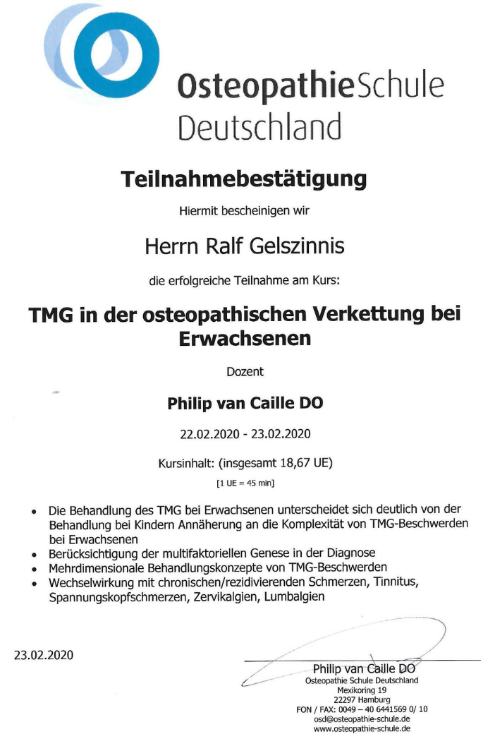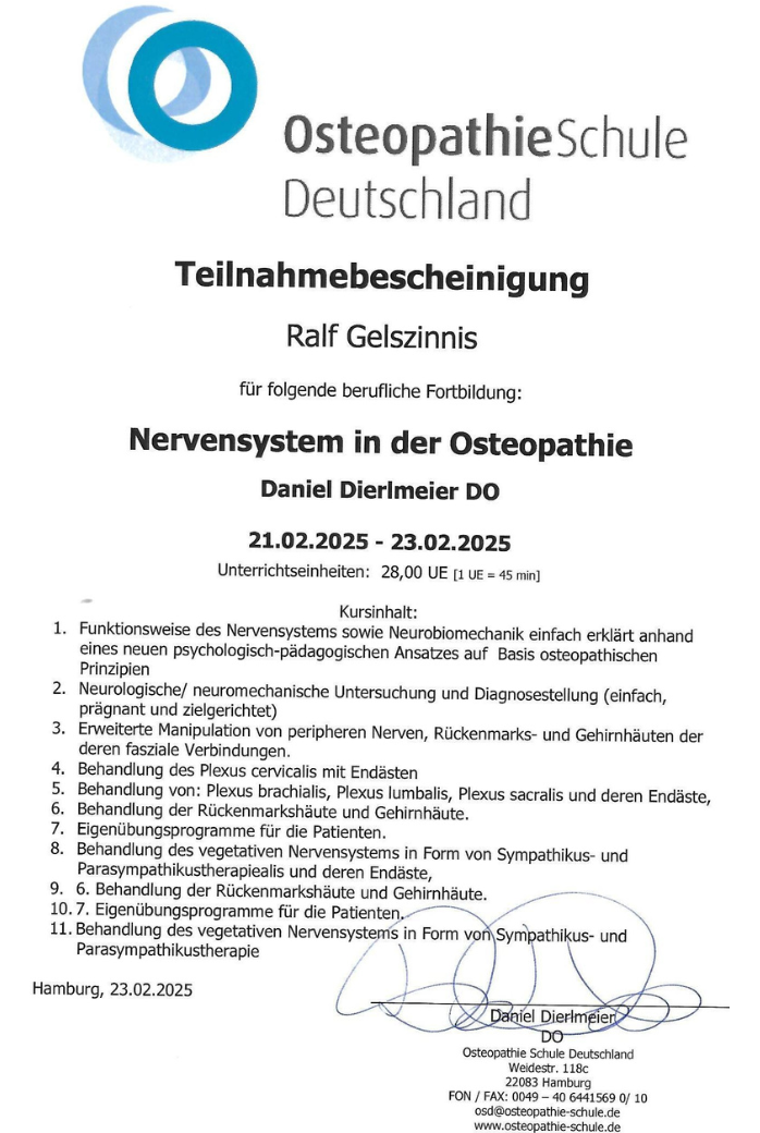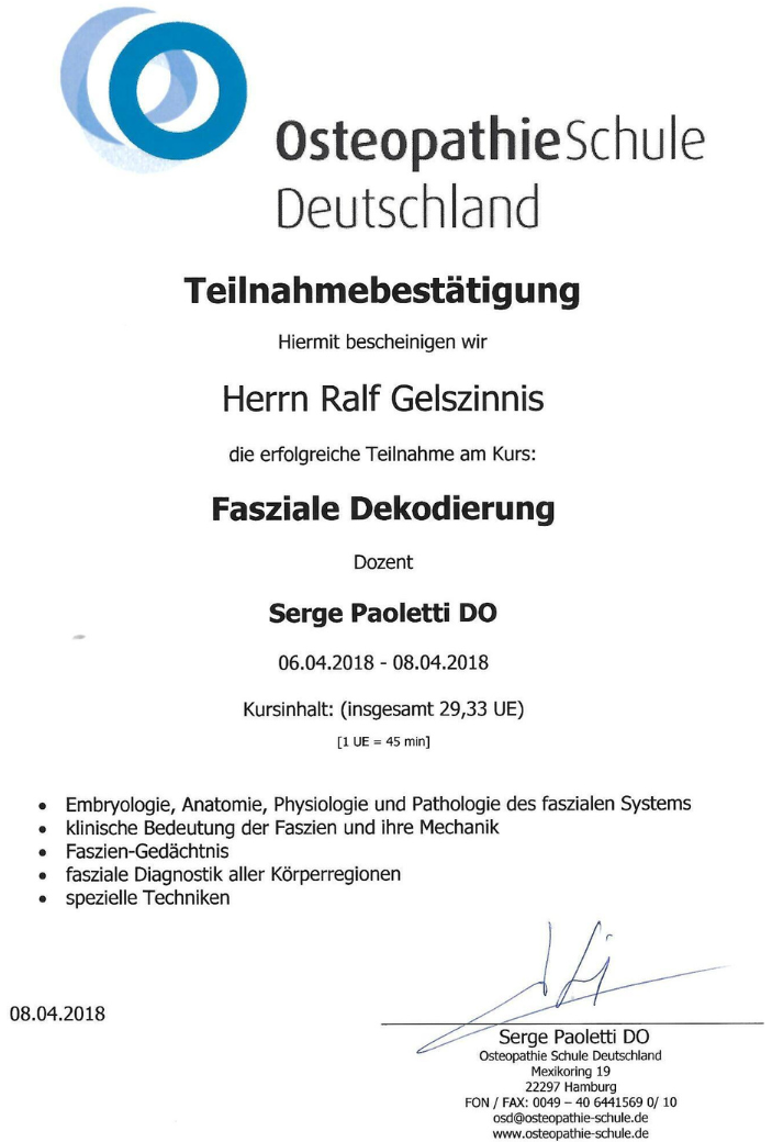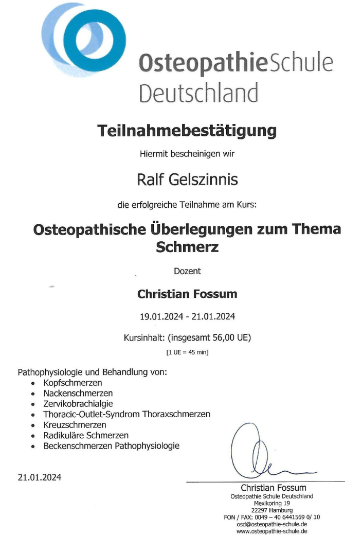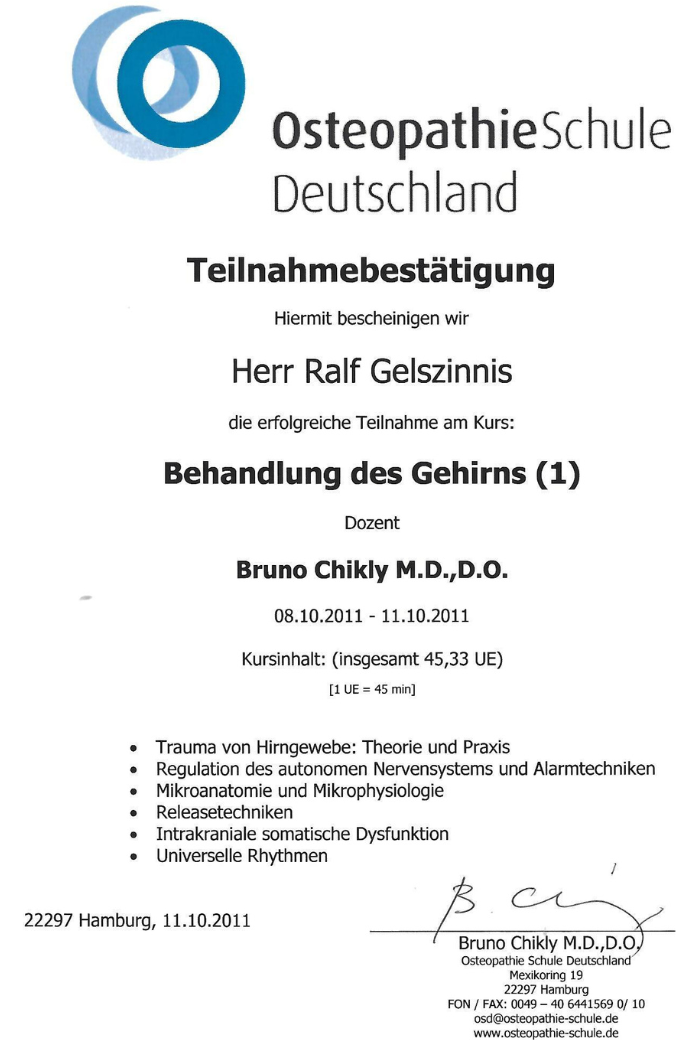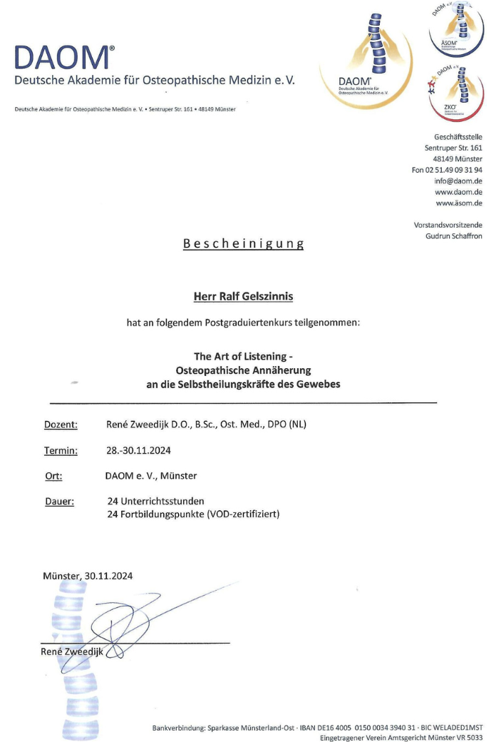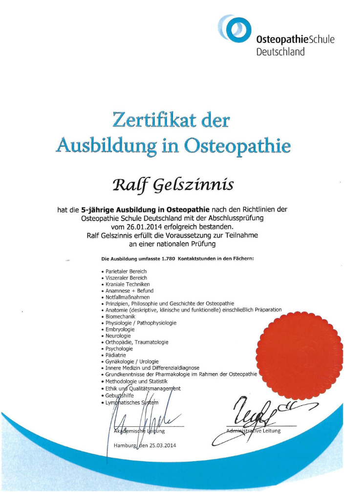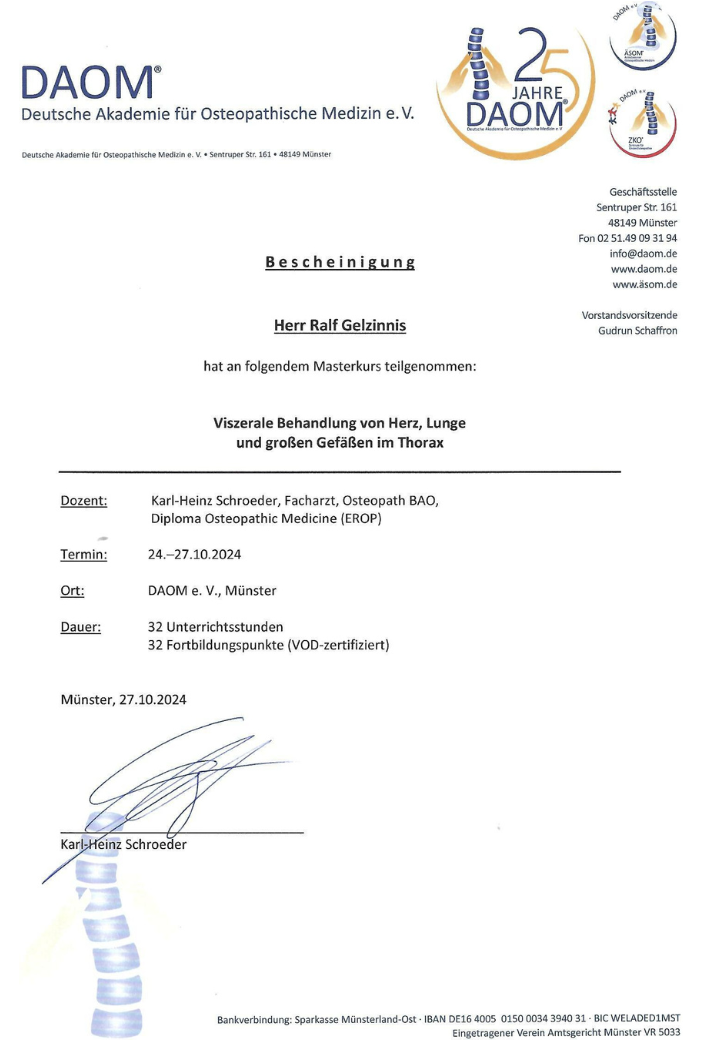Zertifikat zur Ausbildung in Osteopathie