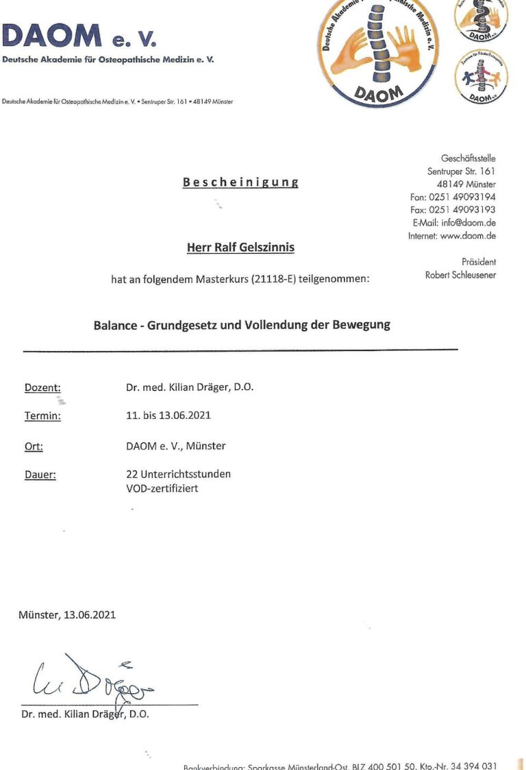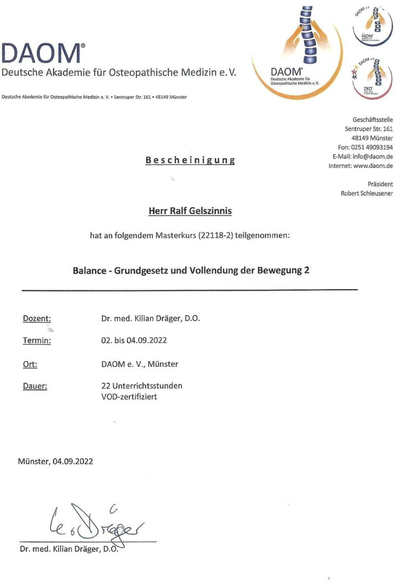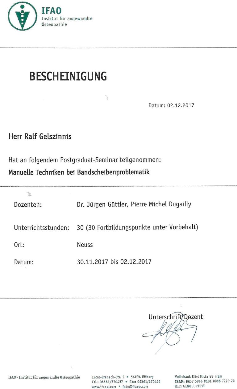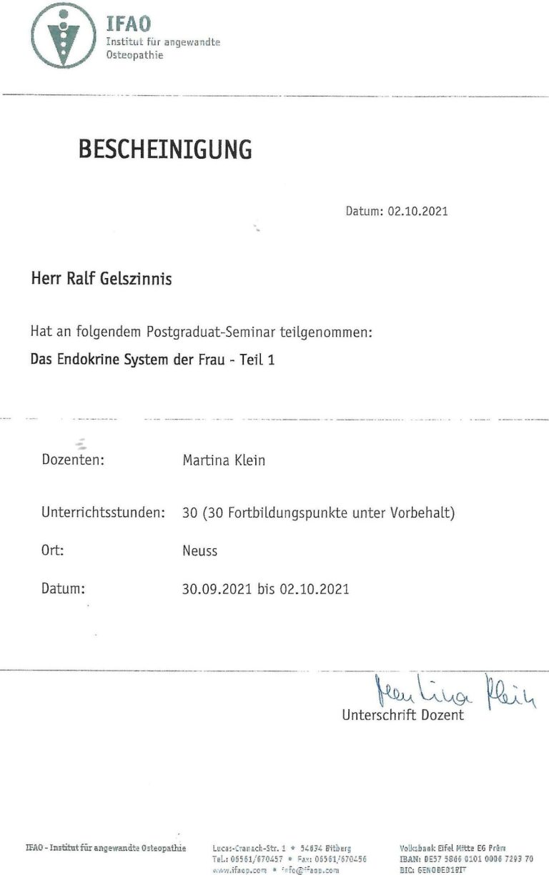 Zertifikat Ausbildung Osteopathie