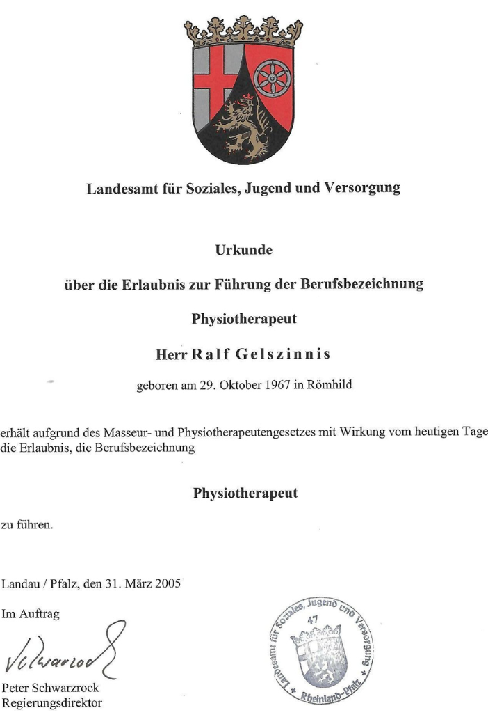 Urkunde Berufsbezeichnung Physiotherapeut